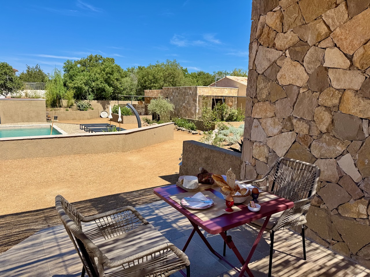 Profitez d’un jardin méditerranéen, d’une terrasse ombragée, d’une piscine extérieure avec vue sur le maquis, ou encore d’un moment de détente dans le jacuzzi. La salle de sport complète l’offre bien-être.