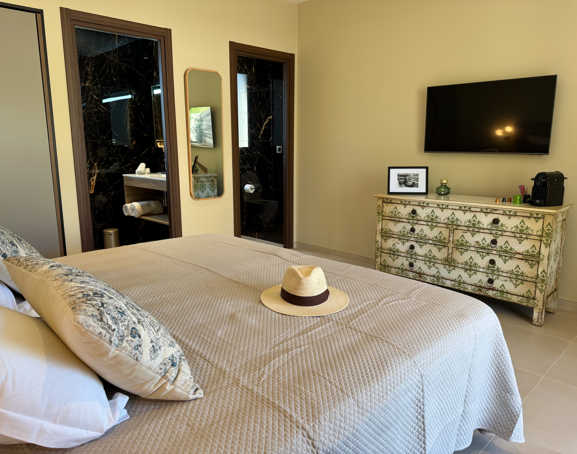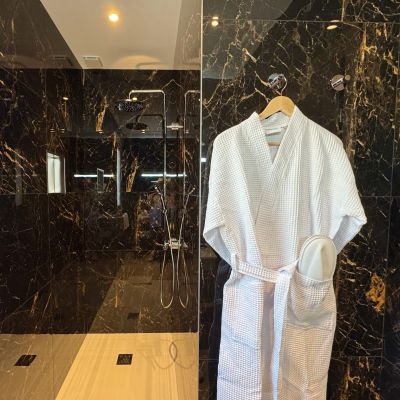 Chaque chambre de Casaromatica a été pensée dans les moindres détails pour offrir une expérience apaisante et élégante. Murs en pierre naturelle, lignes épurées, matières nobles et équipements haut de gamme : ici, tout invite au lâcher-prise.